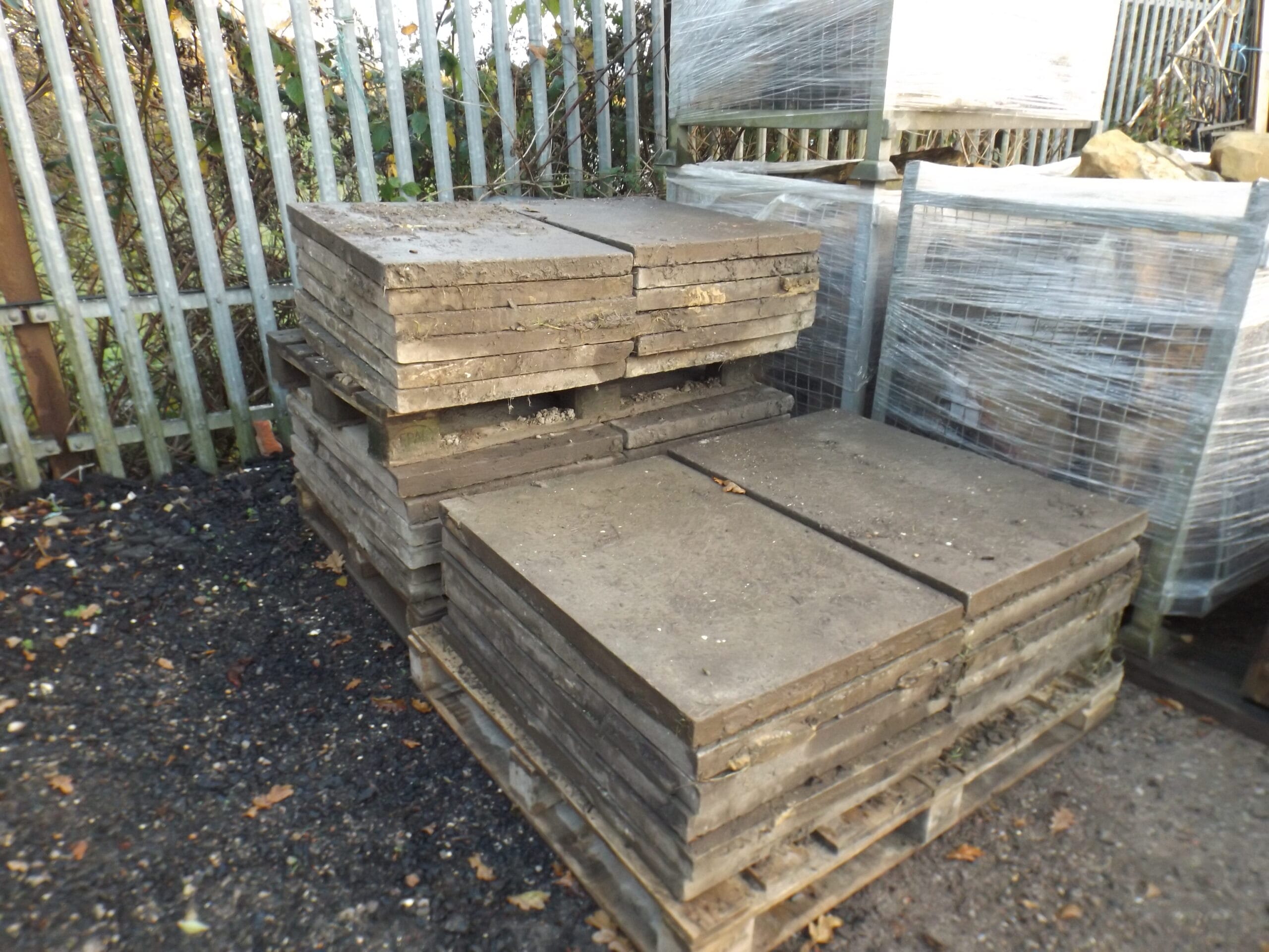 We currently have a small batch of 900 x 600 reclaimed concrete slabs, 50mm thick. Lightly worn and weathered, with some dimples still showing on some slabs.