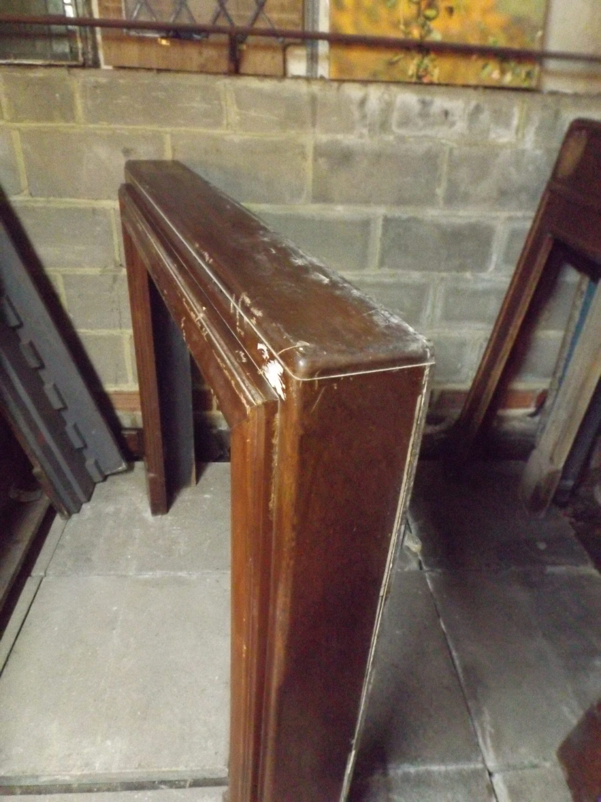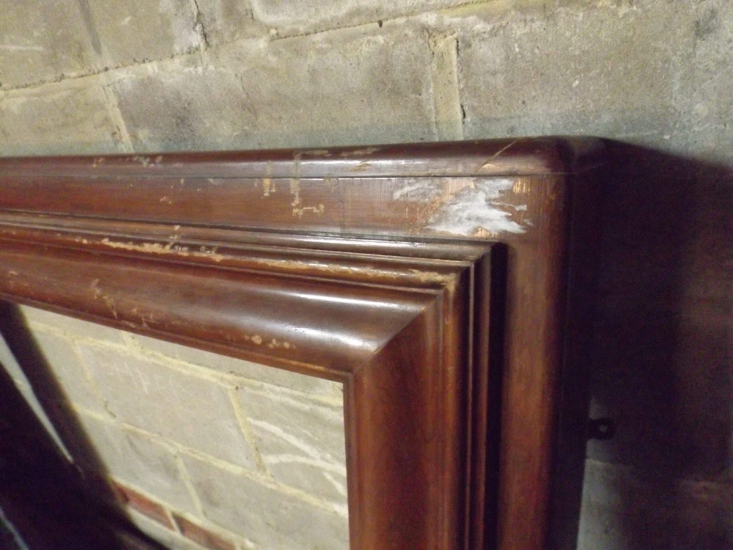 A mahogany Art Deco bolection fire surround. Understated with clean simple lines and softened corners. In good solid condition, the original French polish needs renewing and there are some scuffs and scratches (a couple of deep scratches to deal with, please see photos).