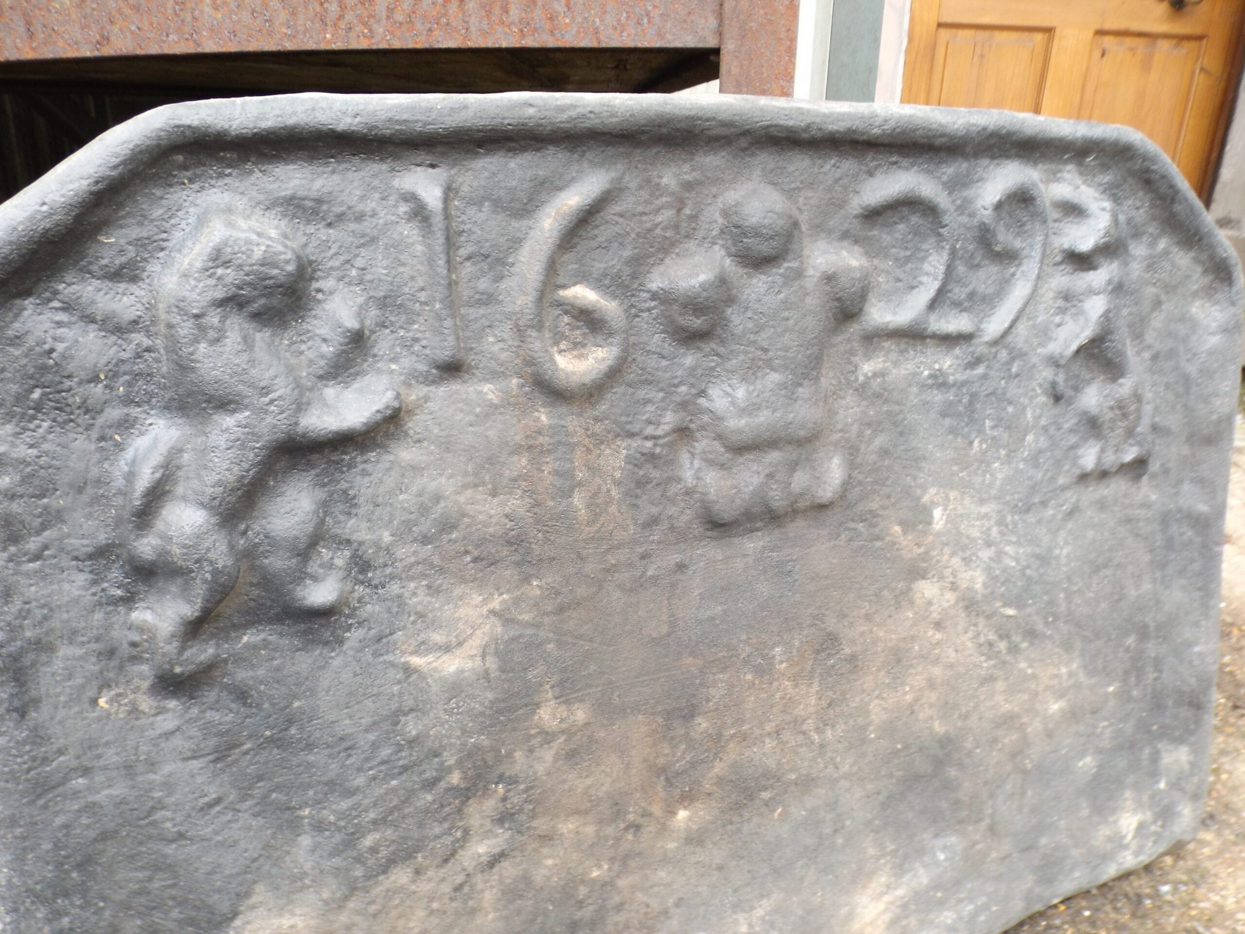 Dated Fireback with Swans Nest Fire Basket