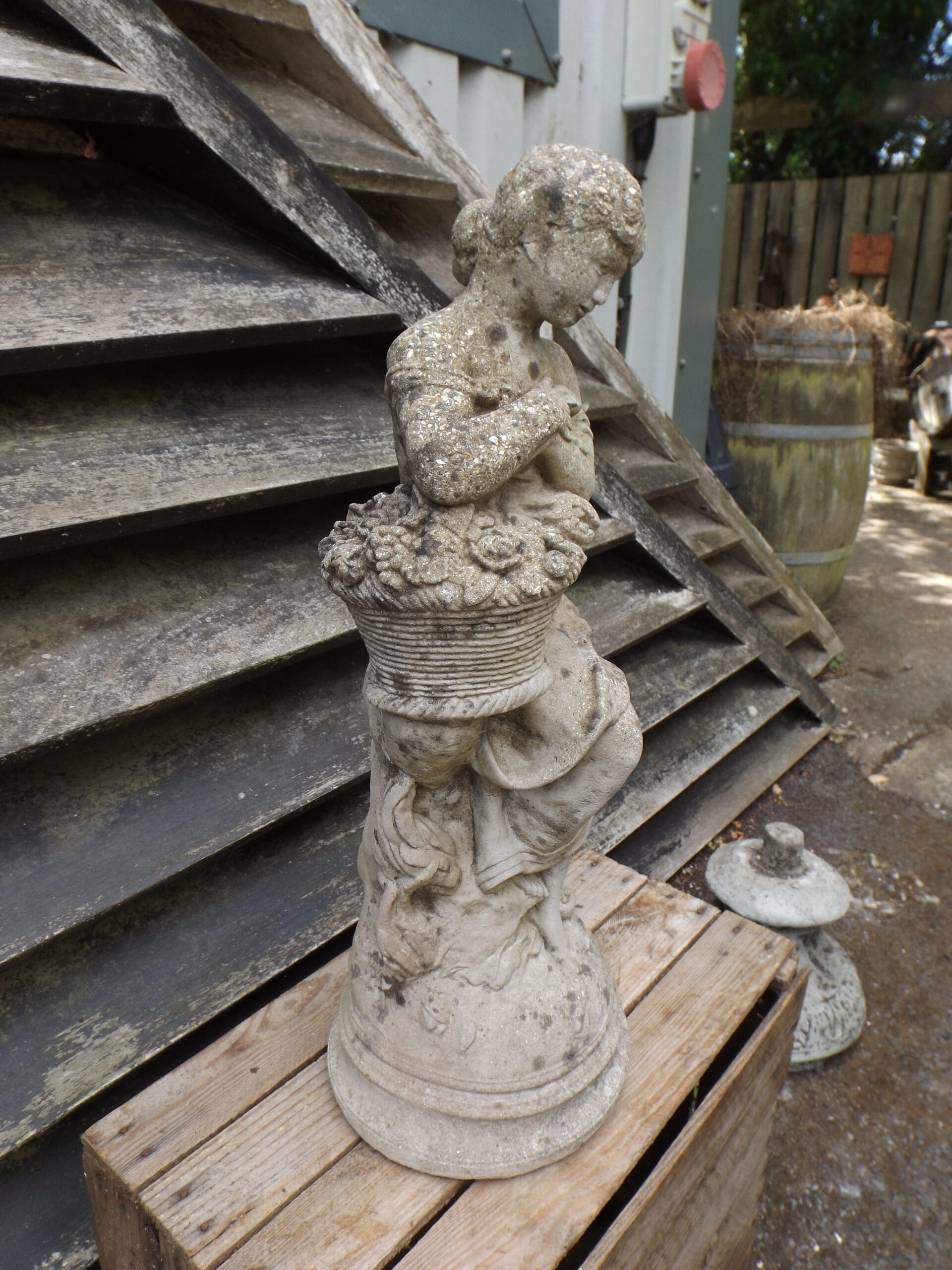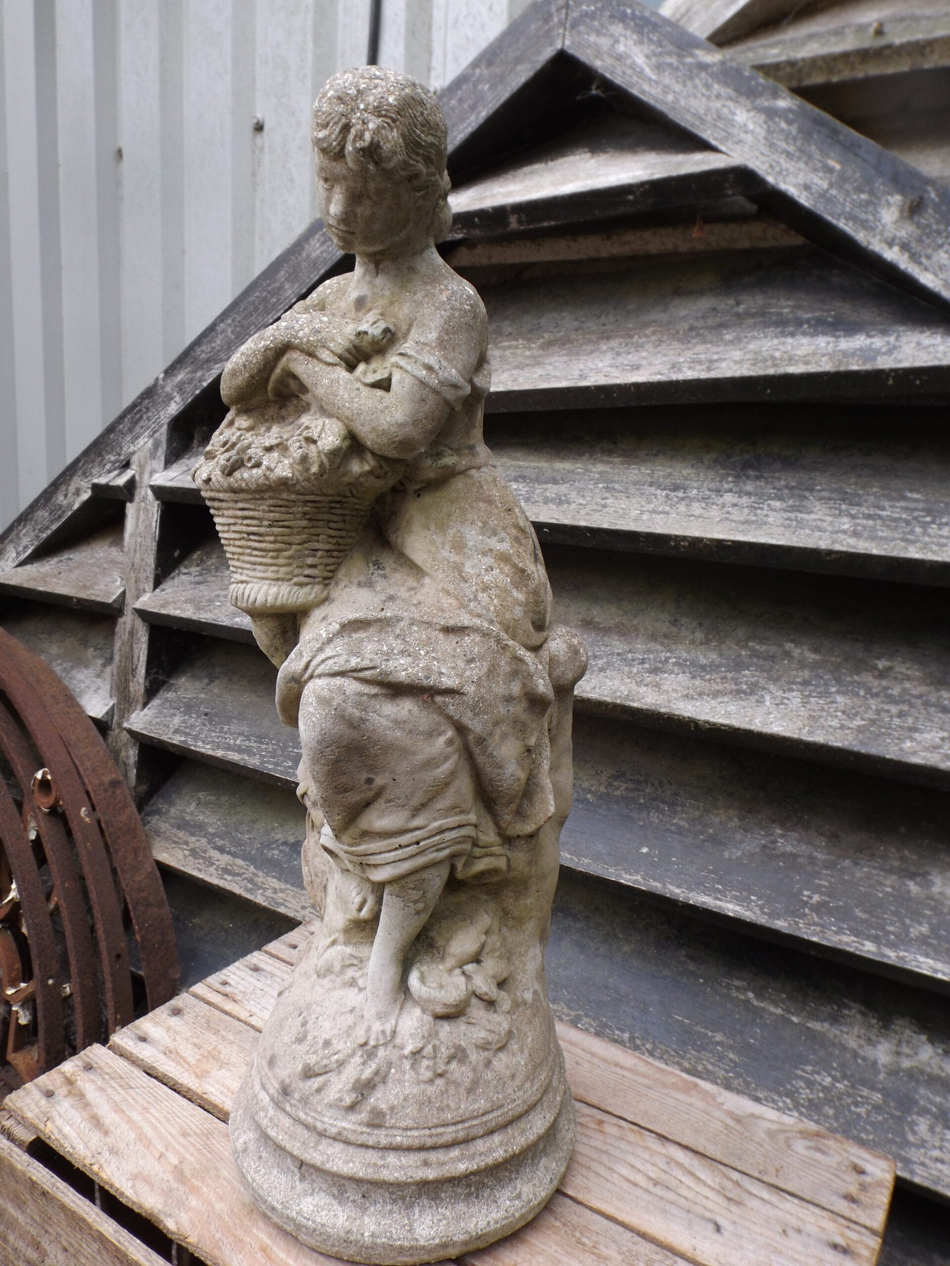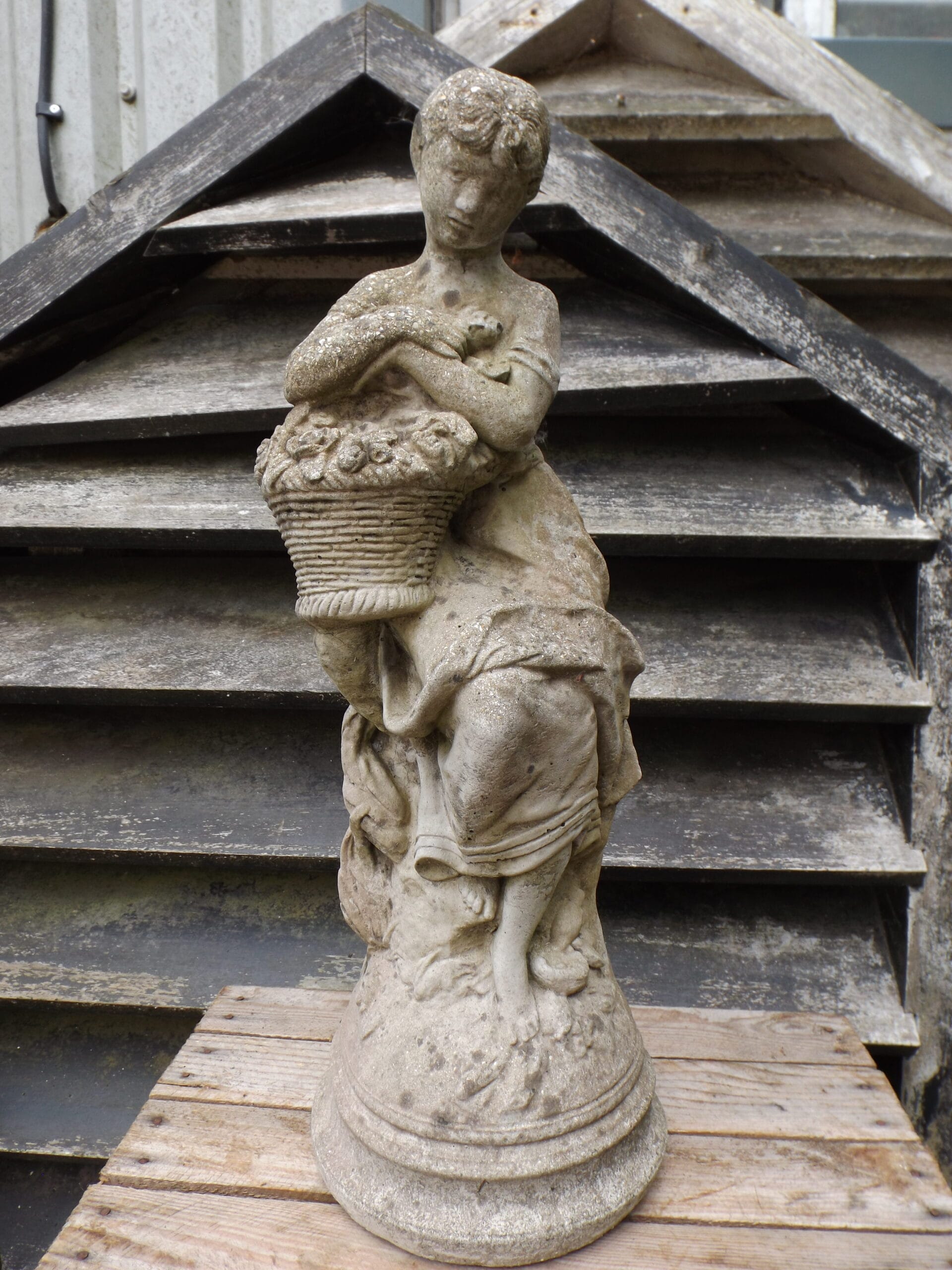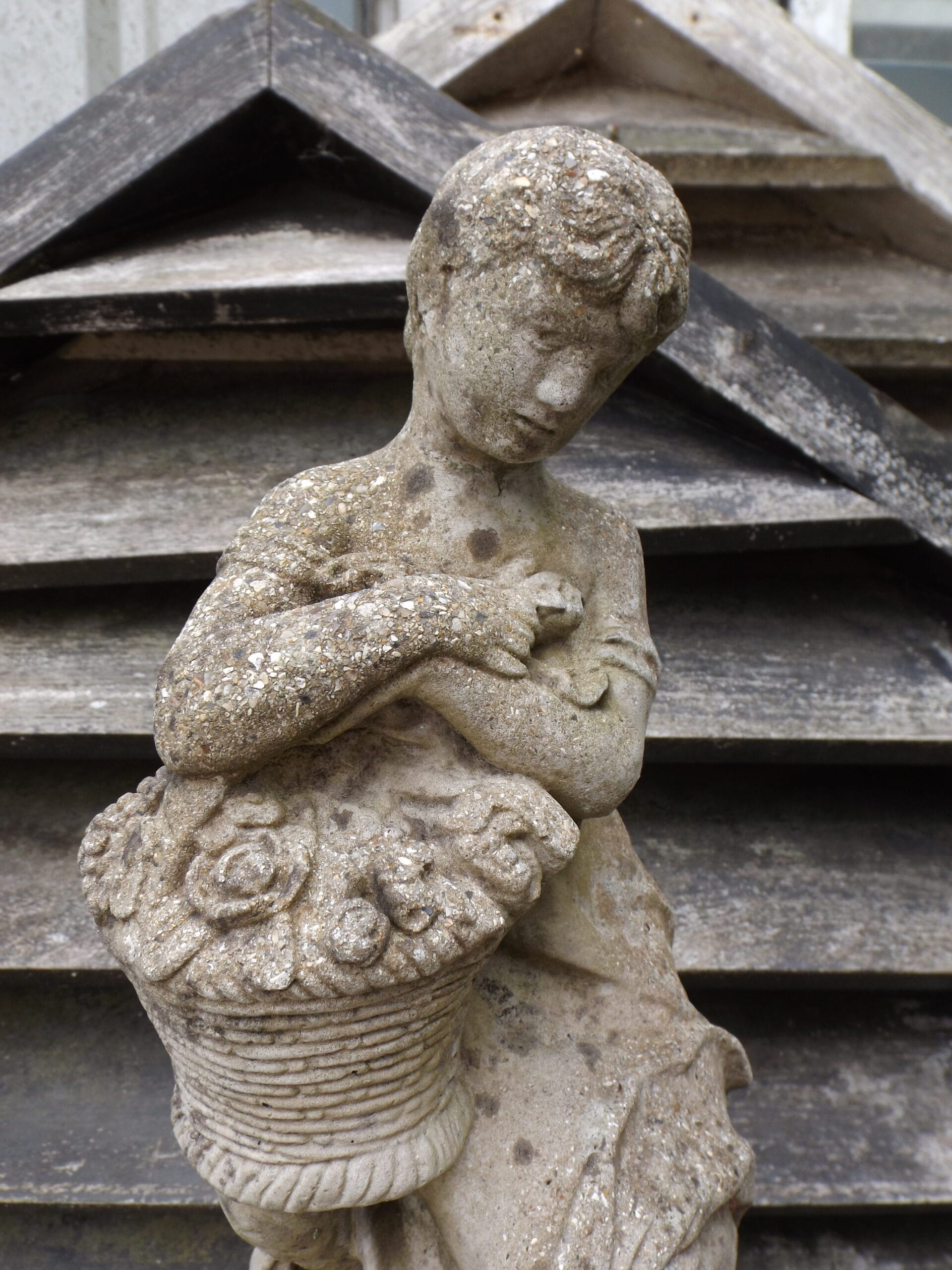 A small and pretty flower girl statuette. In good condition and nicely weathered with a lovely patina.