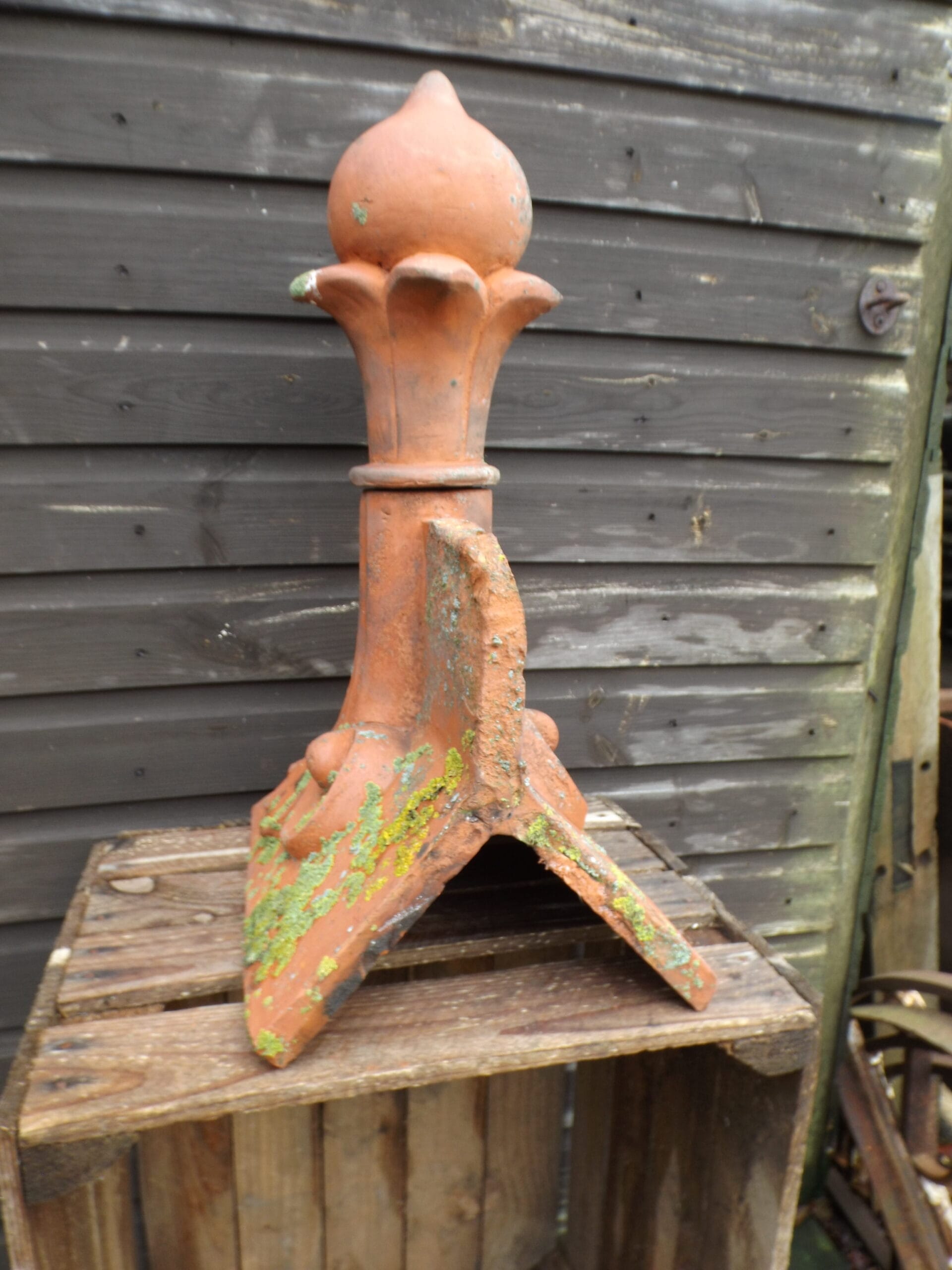 A reclaimed ball roof finial for a hip end roof. A traditional design, charming and full of character with some nice weathering and age worn, please see pictures for wear and tear.
