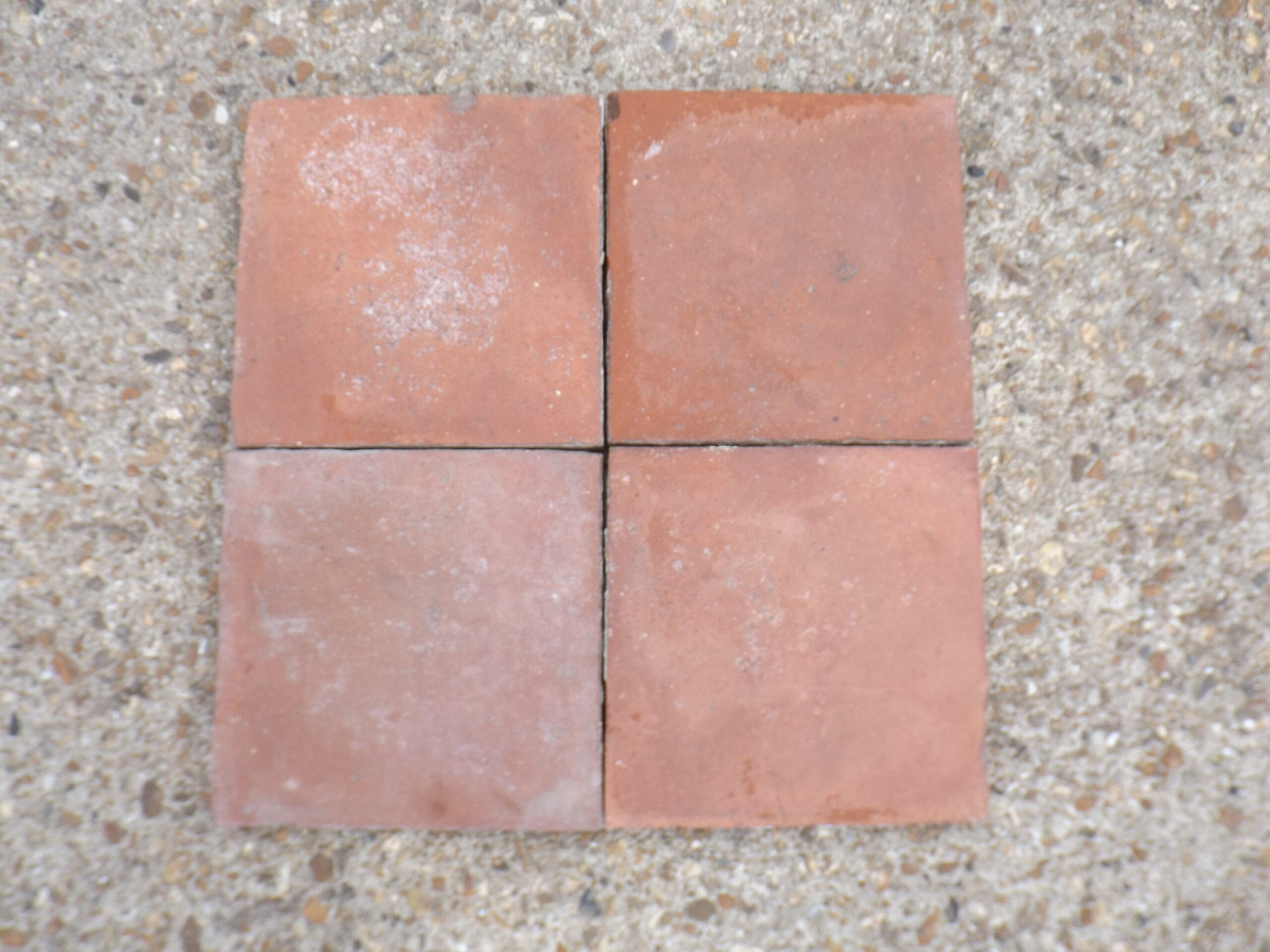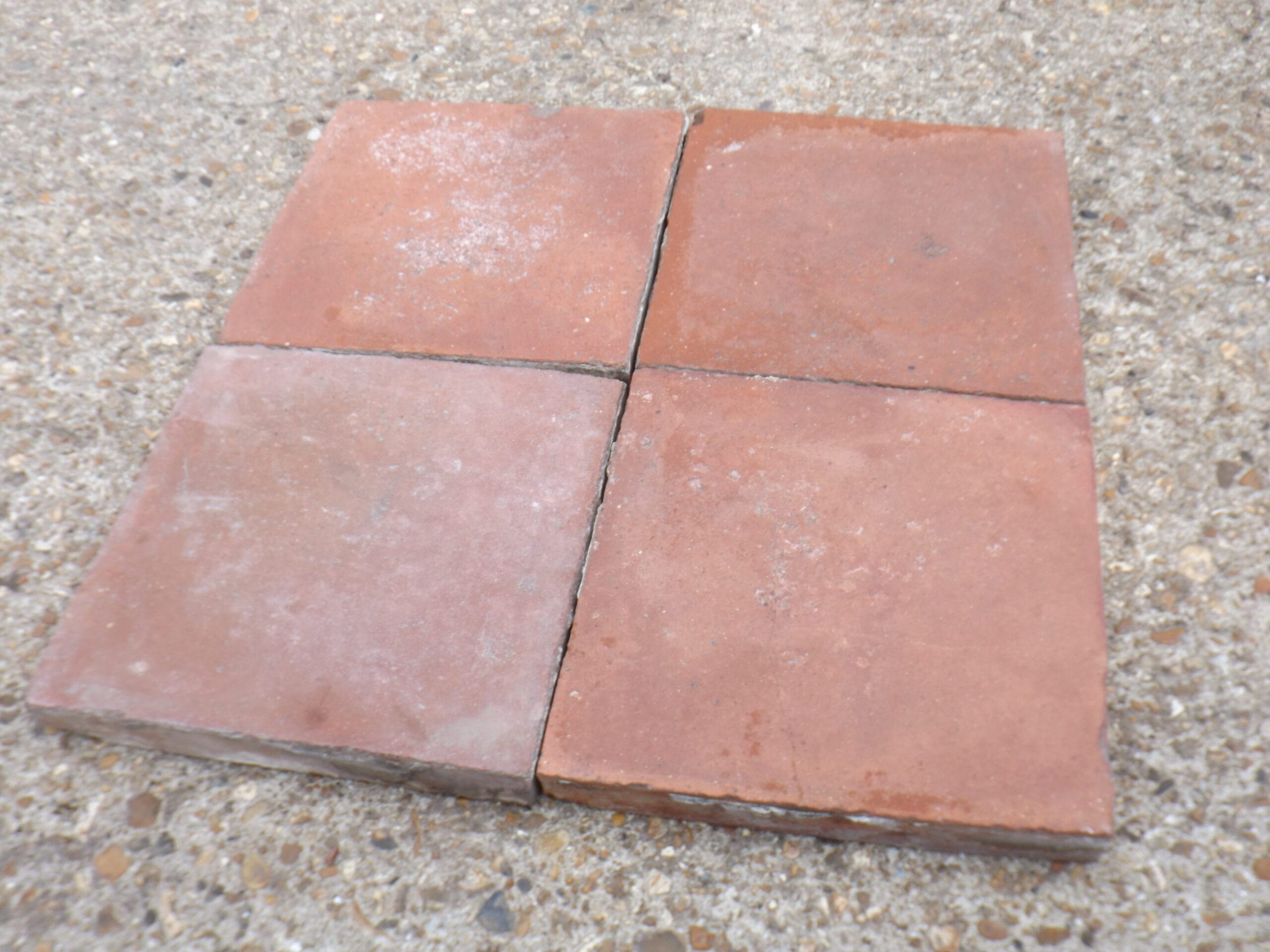 A small batch of reclaimed terracotta floor tiles. Beautifully worn with some nibbles and dinks as expected from age and use. A lovely patina and texture, giving them a pleasing rustic appeal.