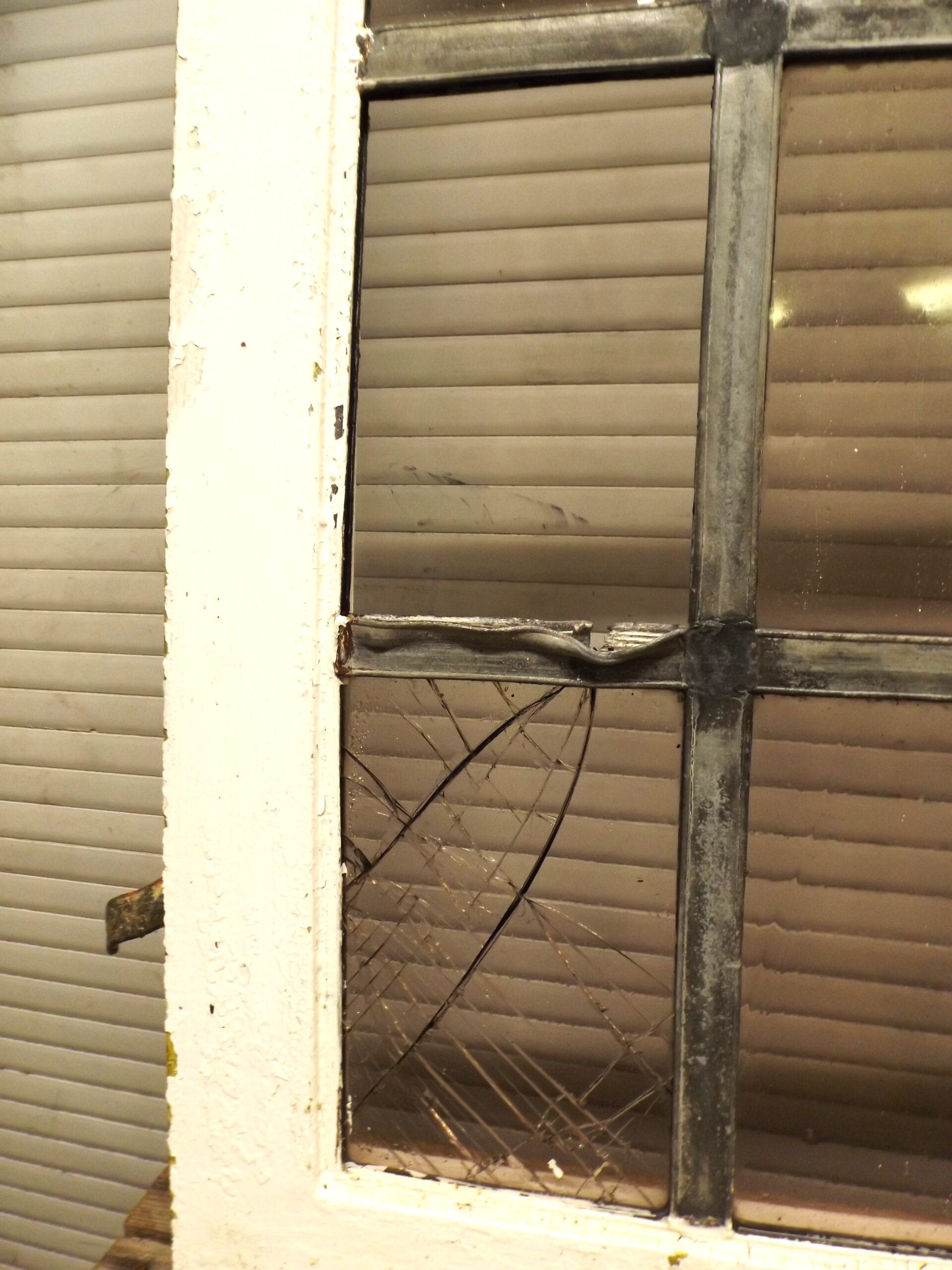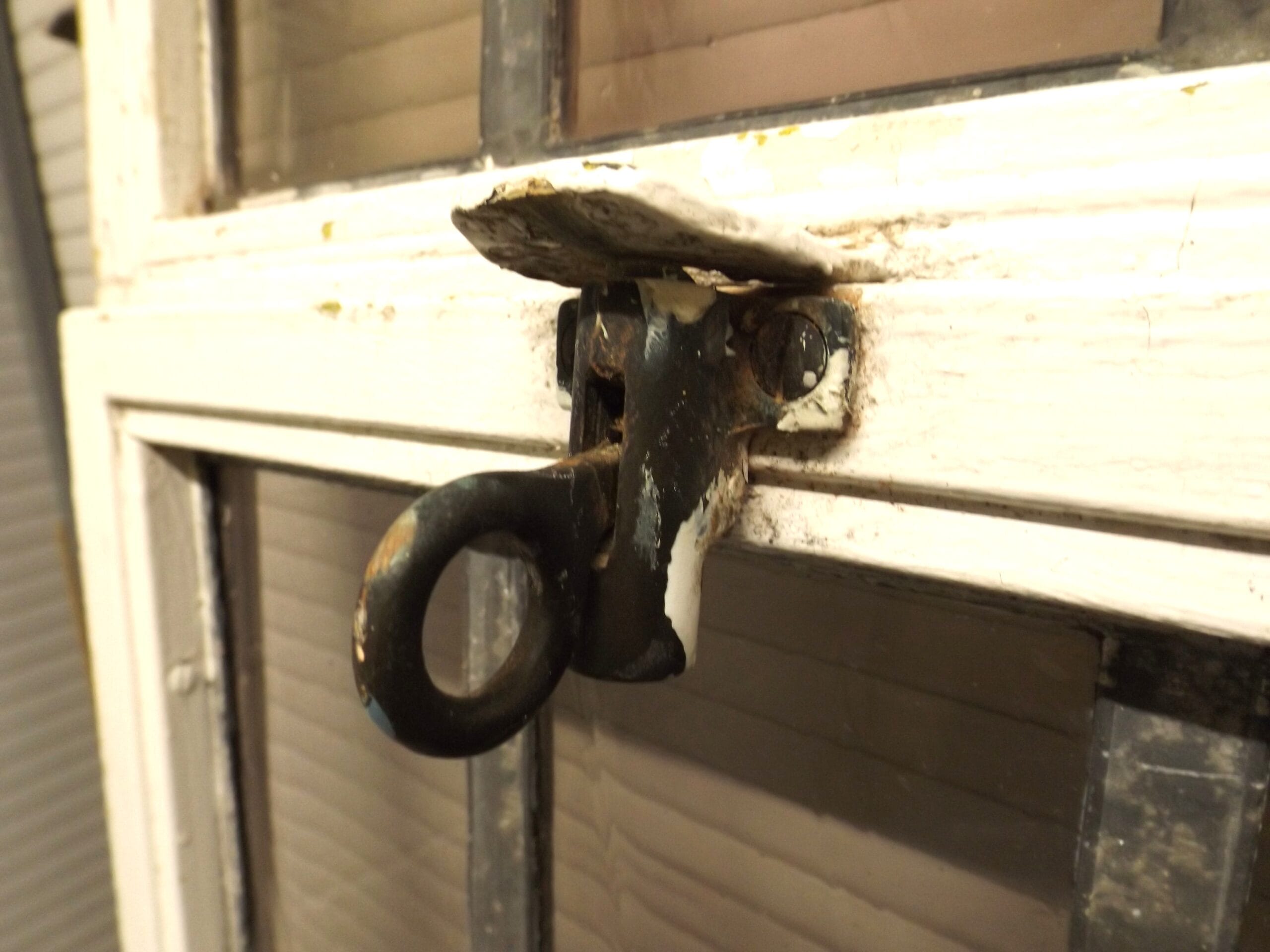 Central hopper window (hinged at the bottom) with original fanlight catch. No broken glazing.