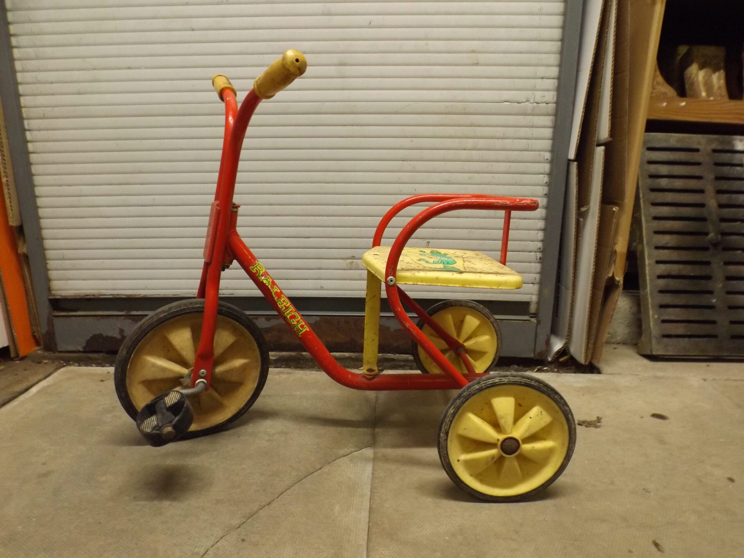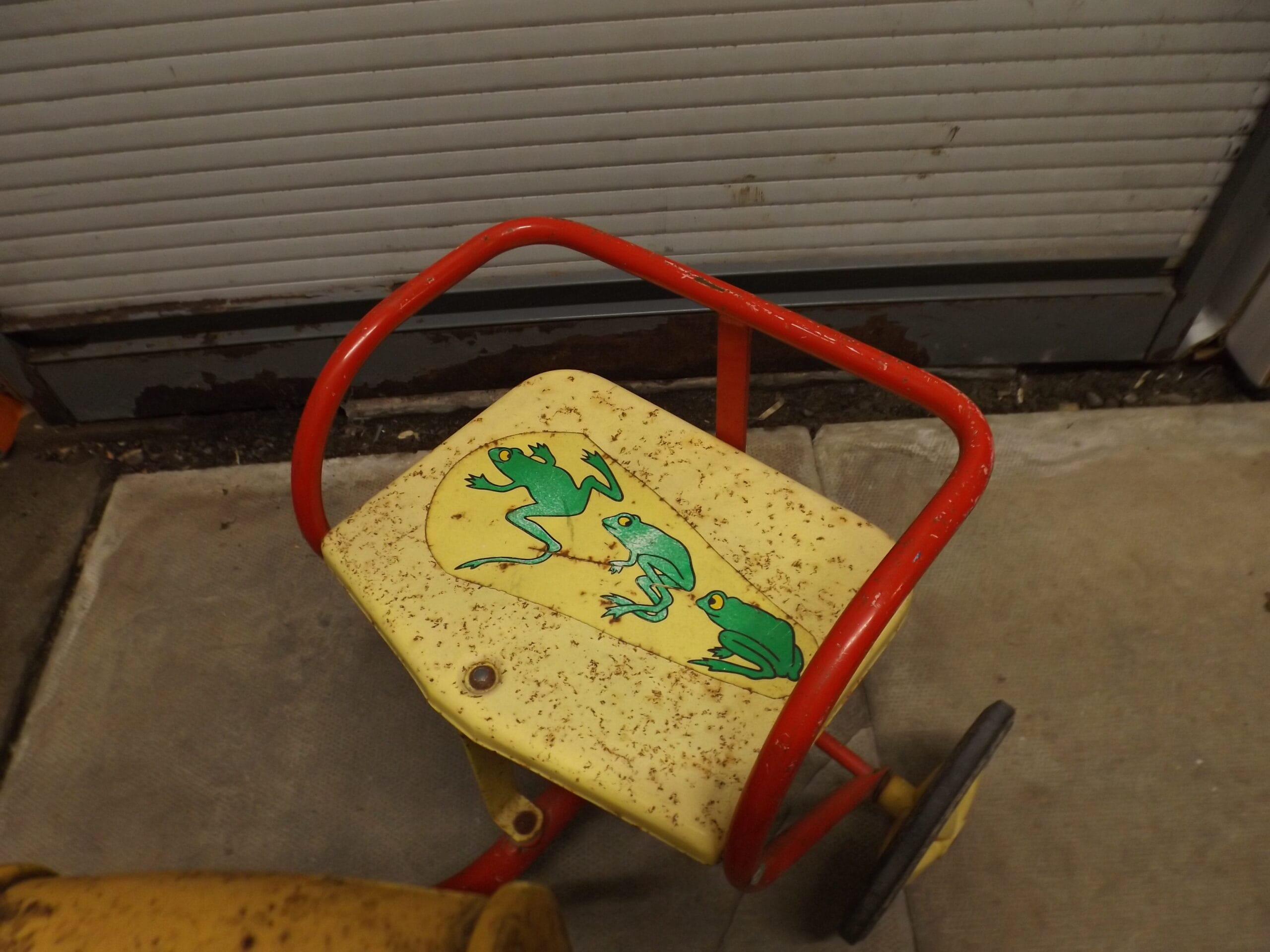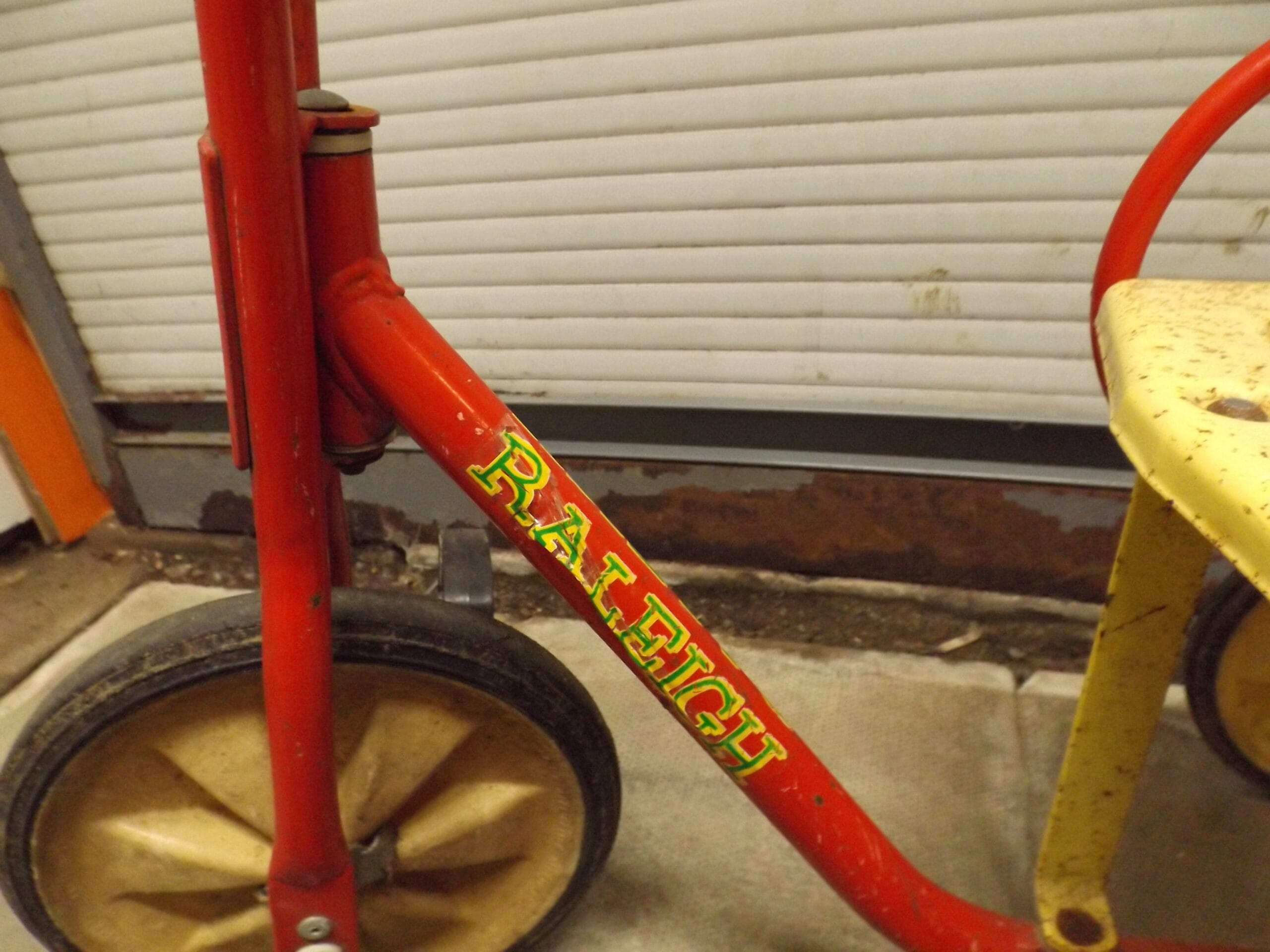 We have this charming toddlers vintage Raleigh Tricycle, dated from the 1950’s or1960’s. Still with the original frog seat decoration.