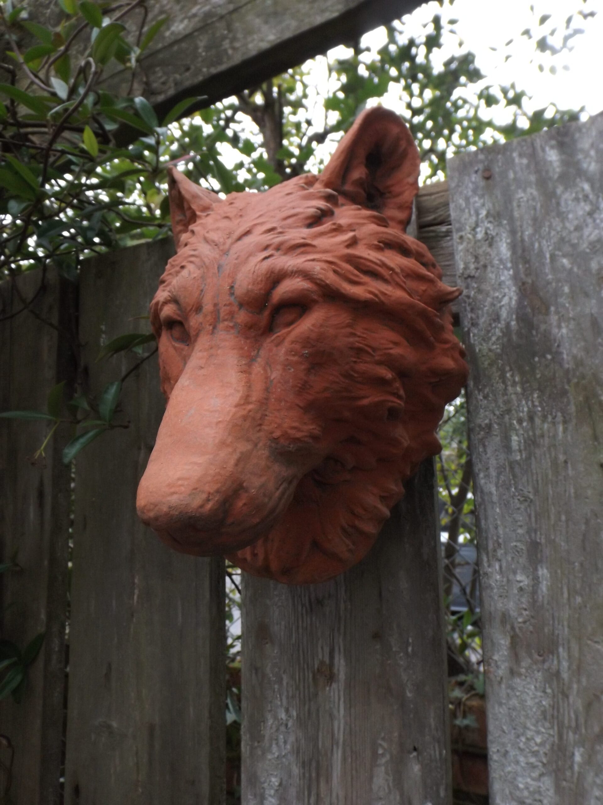 A handsome and well defined wolf head wall plaque. Hand cast in Sussex in frost proof reconstituted stone with a choice of four finishes. Strong wire hanger embedded in back. because this item is handmade, colour/finish can vary slightly from that shown.